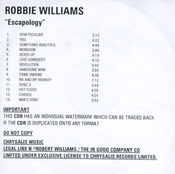 Escapology (Sampler) [Colombie] [Acetate] [CD-R]