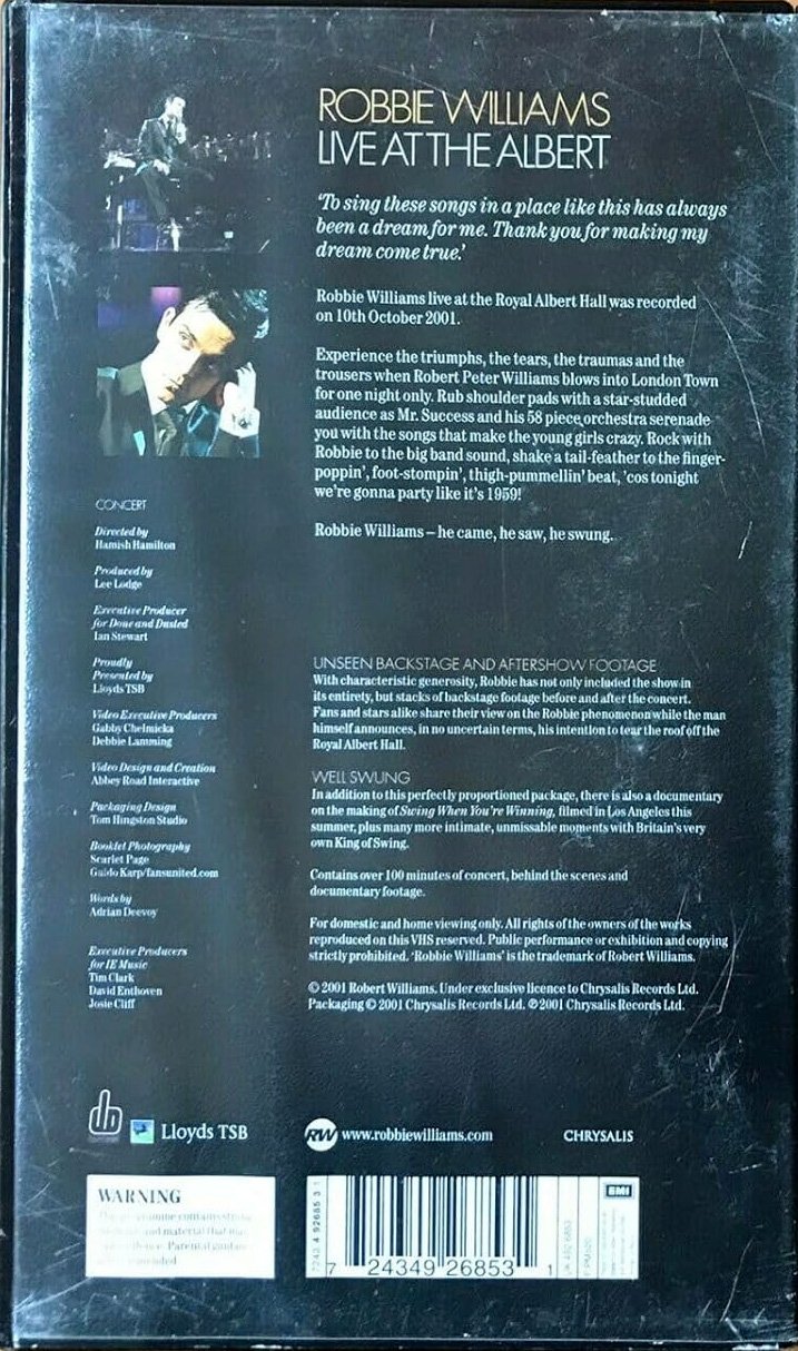 Un mois tout juste après les attentats du 11 Septembre, Robbie a donné un concert exceptionnel au Royal Albert Hall de Londres. Live at the Albert est un concert exceptionnel enregistré le 10 octobre 2001 au Royal Albert Hall. Il capture Robbie Williams dans un registre swing élégant, accompagné d’un grand orchestre, dans le style des crooners légendaires comme Frank Sinatra ou Dean Martin.